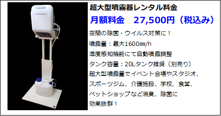 販売商品| 超大型噴霧器レンタル料金 |